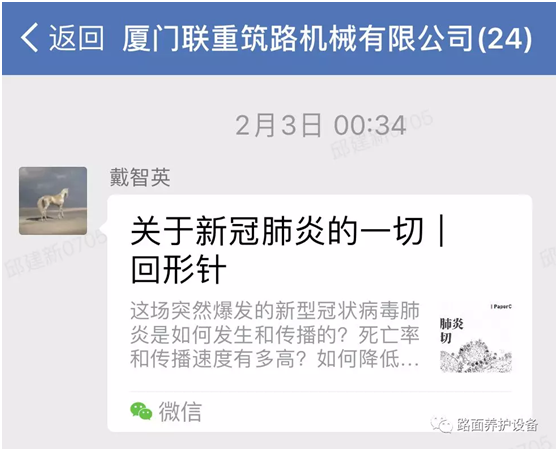 在新型冠状病毒肺炎蔓延期间,厦门联重利用企业微信平台,积极宣传防疫情知识,确保员工了解后做好防护。